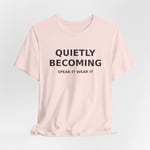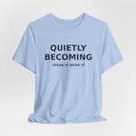 This Quietly Becoming affirmation t-shirt for women is for those evolving in silence, growing in private, and stepping into who they are meant to be—without needing validation.