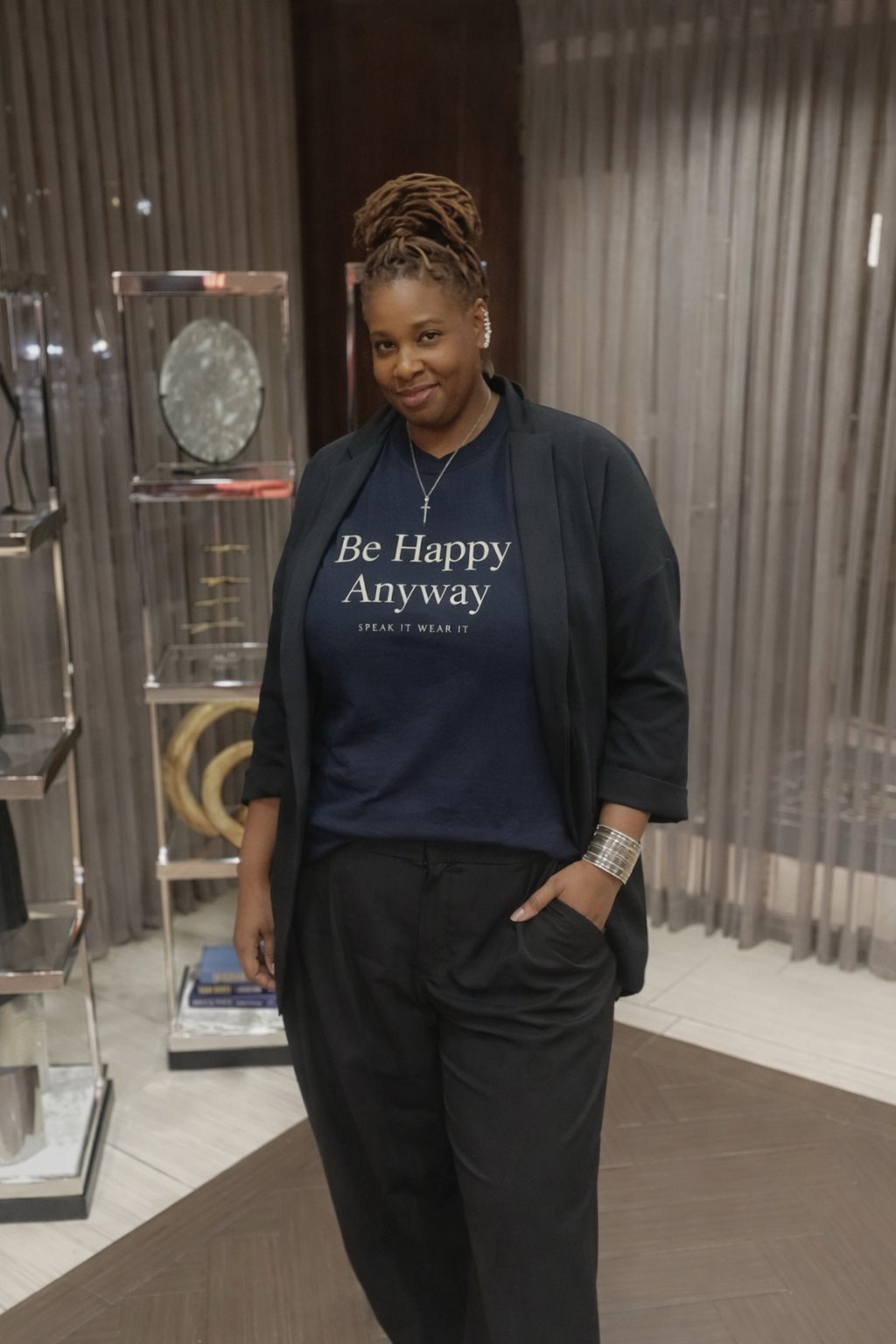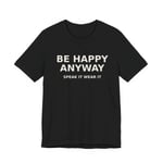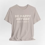 This Be Happy Anyway affirmation shirt for women speaks to resilience, quiet strength, and choosing joy—even in the middle of rebuilding.